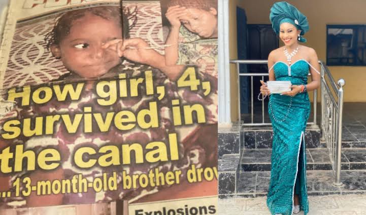 Taking to her twitter to share the newspaper publication from 2002, Ifeoma who was only 4-years-old at the time wrote;