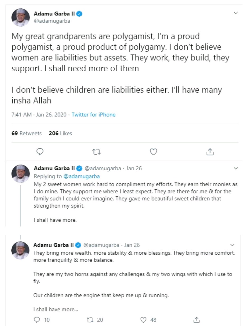 A former Presidential aspirant of the All Progressives Congress, Adamu Garba has joined the ongoing conversation about polygamy in Muslim marriages by revealing why he is a proud polygamist.