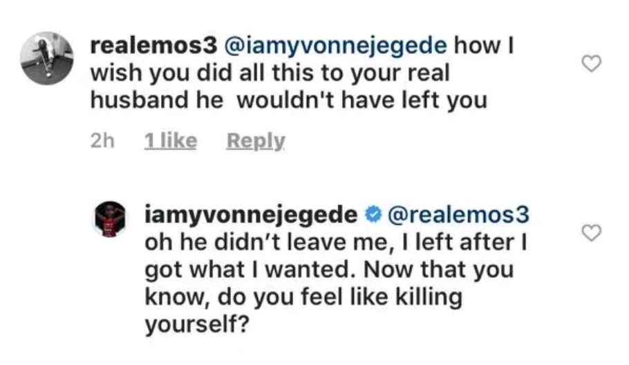 Yvonne immediately shut the troll down with a brilliant response where she said she was the one that actually left Mr. Abounce after she’d successfully gotten what she wanted.