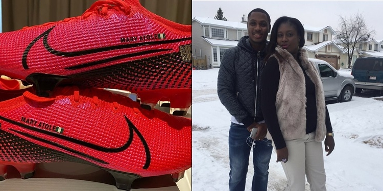 The Manchester United player, honoured his late sister Mary Atole, by dedicating the pair to her after he customized her name on his new Nike boots.