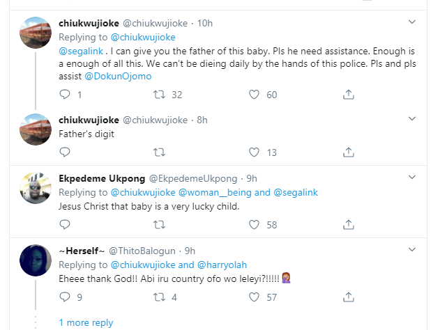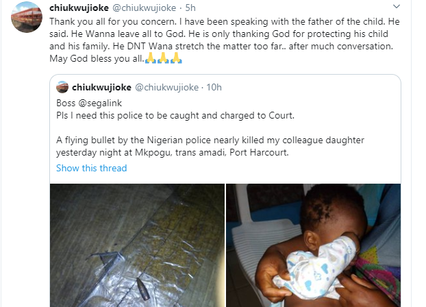 This shocking revelation had twitter users fuming with anger, people offered to help prosecute the officer at fault, but @chiukwujioke stated that the father of the child wasnt willing to press charges.