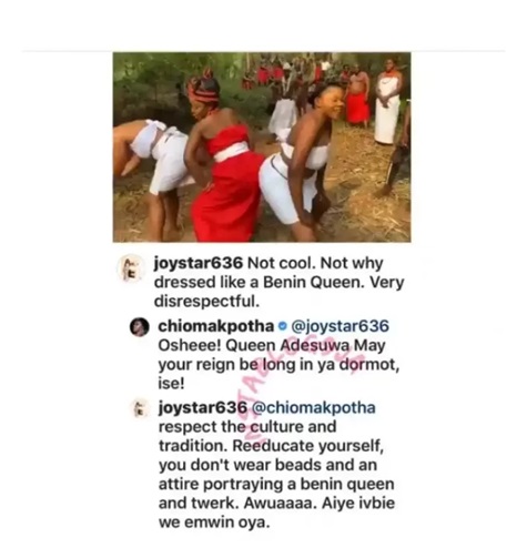 Renown Nollywood actress, Chioma Akpota has been attacked for ‘disrespecting’ the Queen of Benin by twerking in a Benin royal costume.