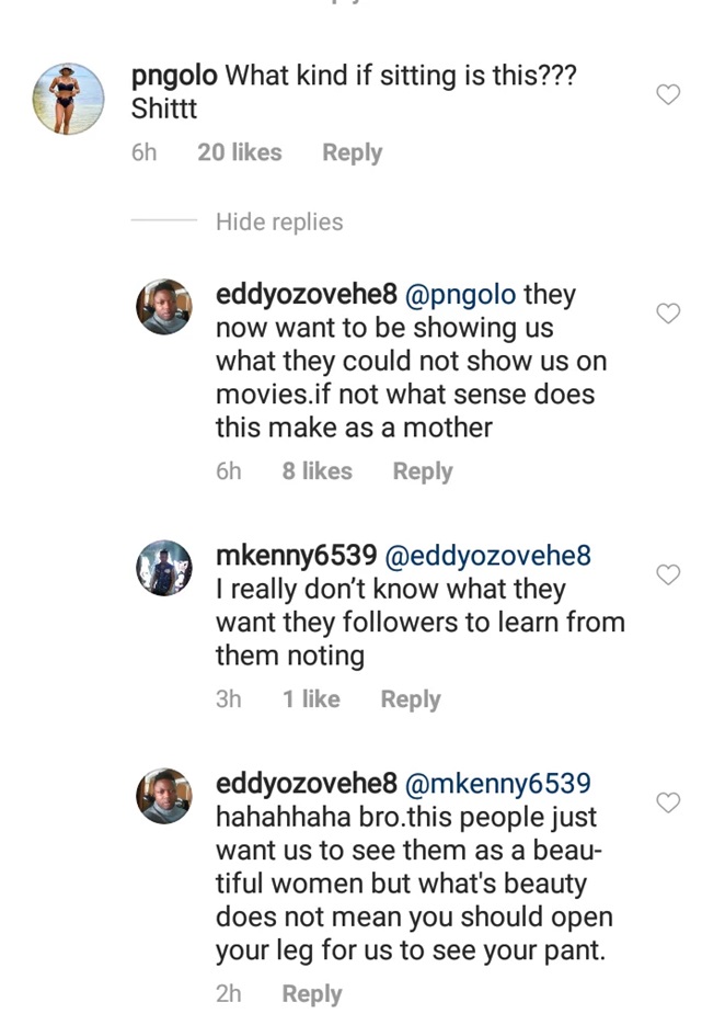 The actress and mother of one who was at the media screening of Emem Isong’s new movie, ‘Special Jollof’ wore a two piece short outfit. But her sitting position while taking photos didn’t go down well with her fans and they decided to let minds be heard through the comment session.