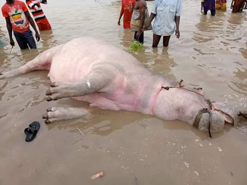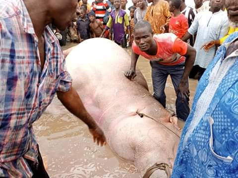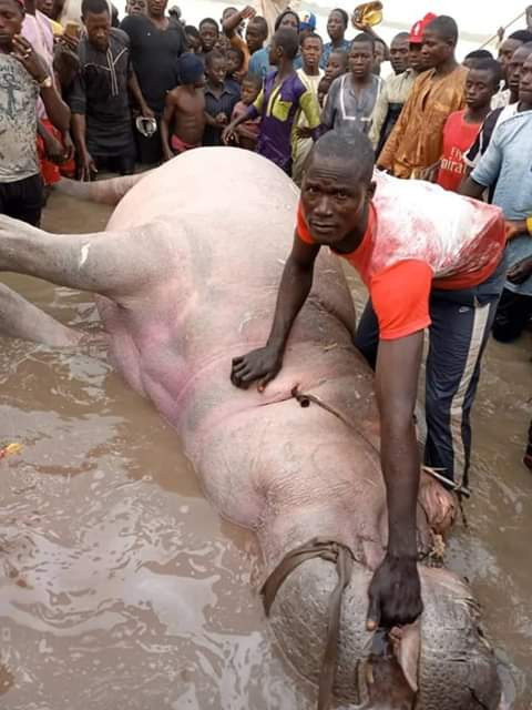 WITHIN NIGERIA learnt that the huge aquatic animal was killed for wrecking havoc on farmlands in the area.