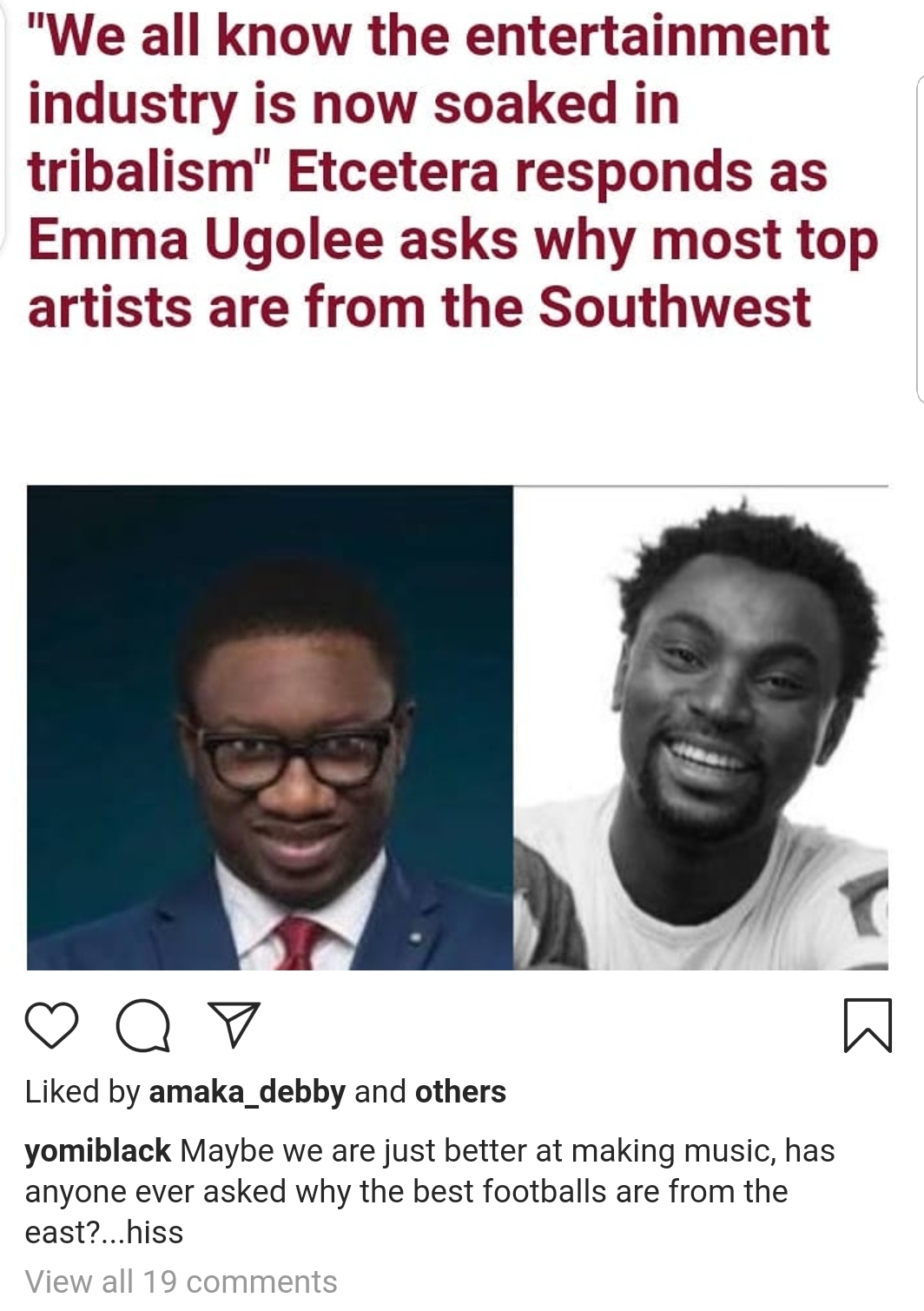 Responding to this, veteran singer, Etcetera, took to the comment section to not only agree with him but also point out the reasons for the one-sidedness. According to him, the industry is now soaked in tribalism.