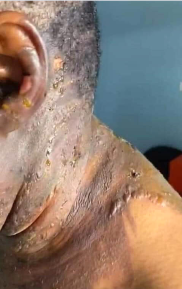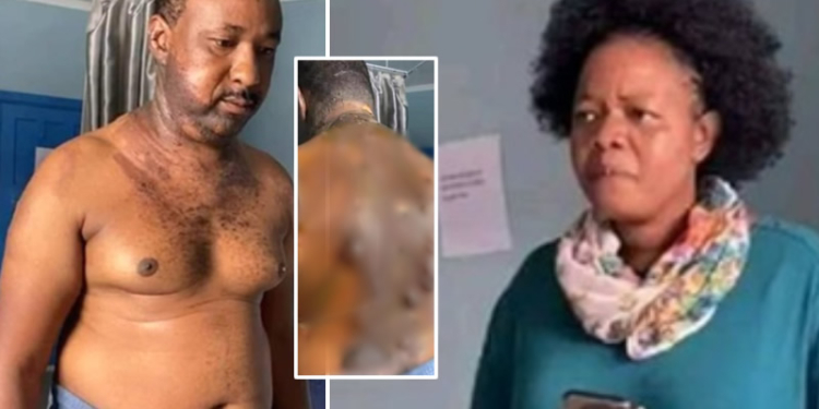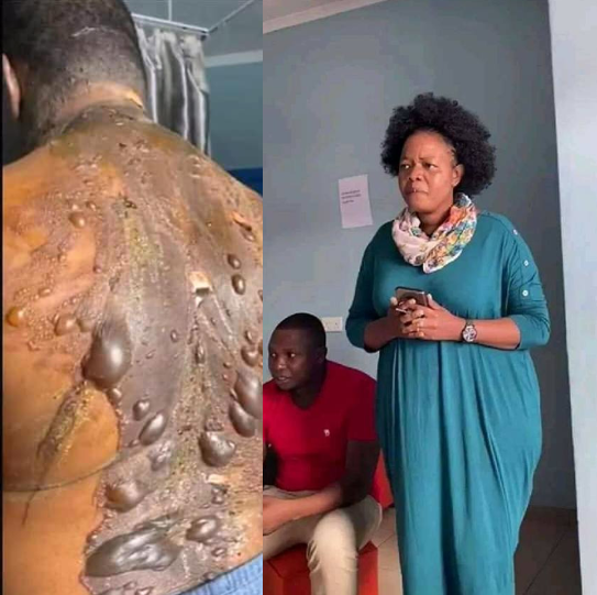 Photos of a Kenyan man whose back, neck, and chest were scalded with hot water has been shared online and according to reports, his wife is responsible for his injuries.