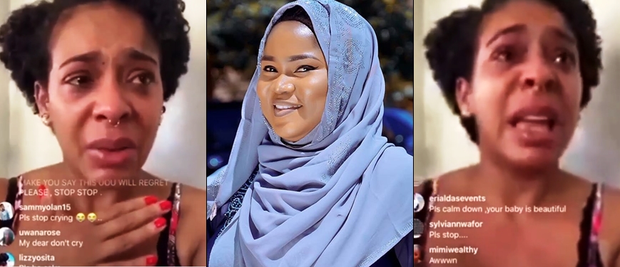 Ex BBN Finalist, TBoss this afternoon broke down in uncontrollable tears after a lady in hijab slammed her with nasty remarks on her Instagram live and comment section, calling her daughter ‘ugly’.