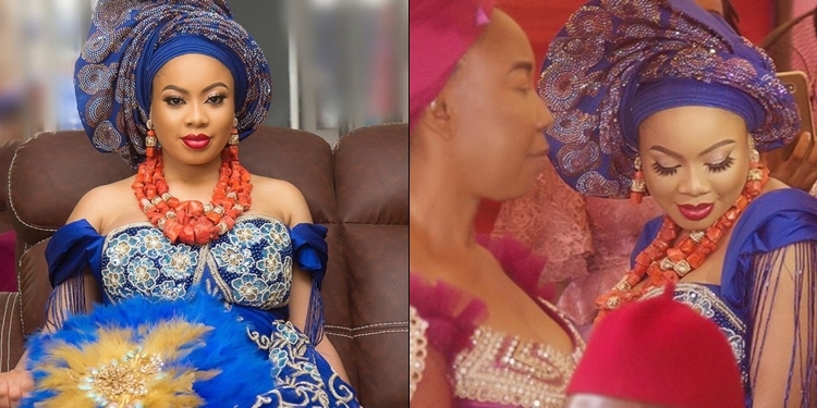 Nina Ivy took to social media to share her traditional marriage photos without her husband and wrote; “People been working overtime to see my hubby, sorry darlings you all would never.”