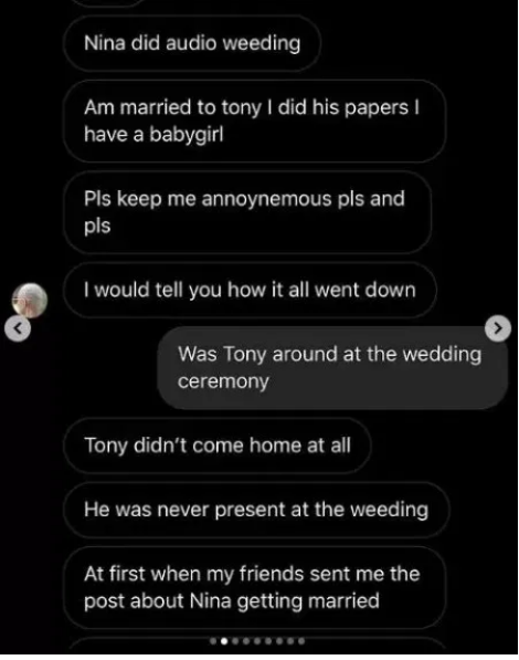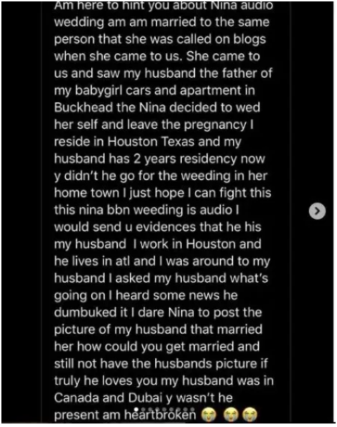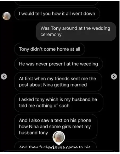 Now, after the photo went viral, this new lady is also claiming to be the wife of the same man Nina Ivy married and she even gave the man’s name as TONY.