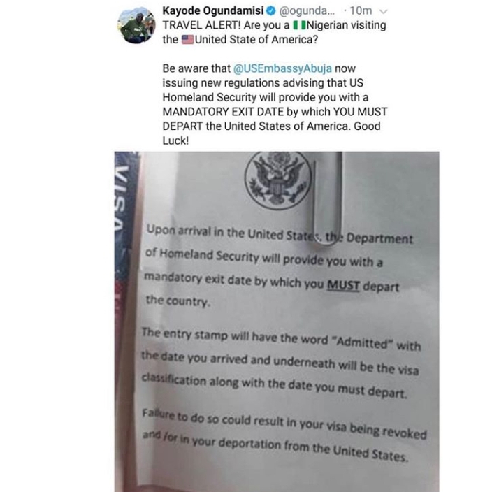 Barely months after United States imposed travel ban on Nigerians, the American Embassy have issued new regulations to Nigerians visiting the nation7.