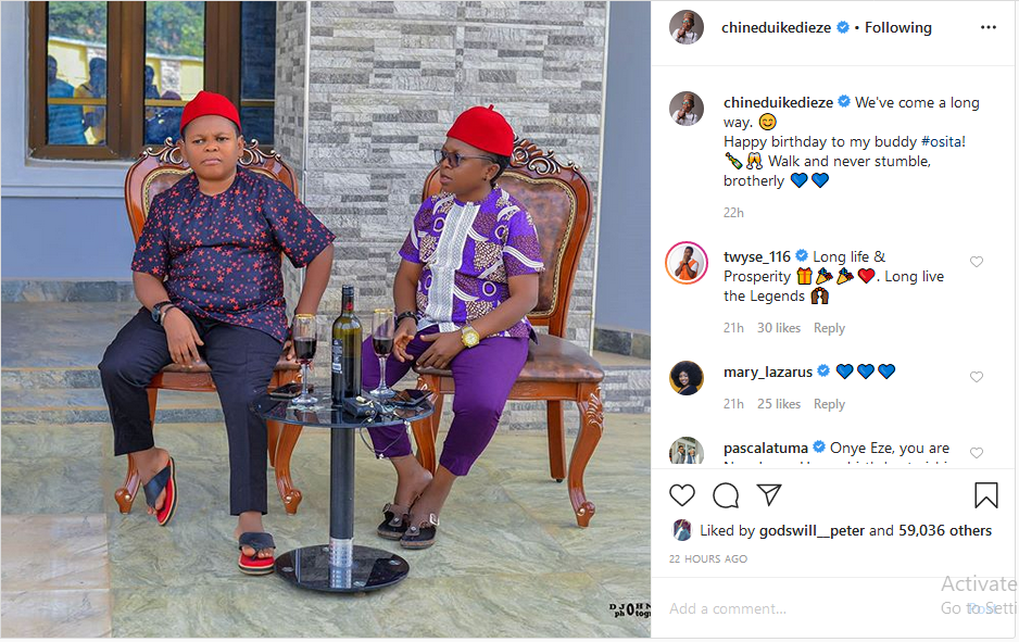 “We’ve come a long way. Happy birthday to my buddy #osita! Walk and never stumble, brotherly”