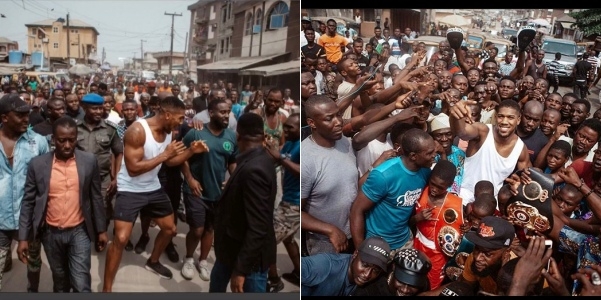British-Nigerian heavyweight champion, Anthony Joshua took his belts to the streets of Makoko community in Lagos state.