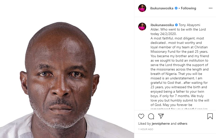 Awosika revealed that the late Alder, who was a missionary worker died today.