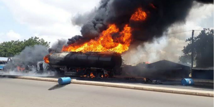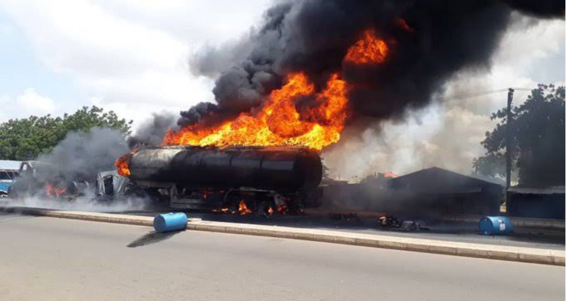 A burning tanker has shut down the Lagos-Ibadan Expressway.
