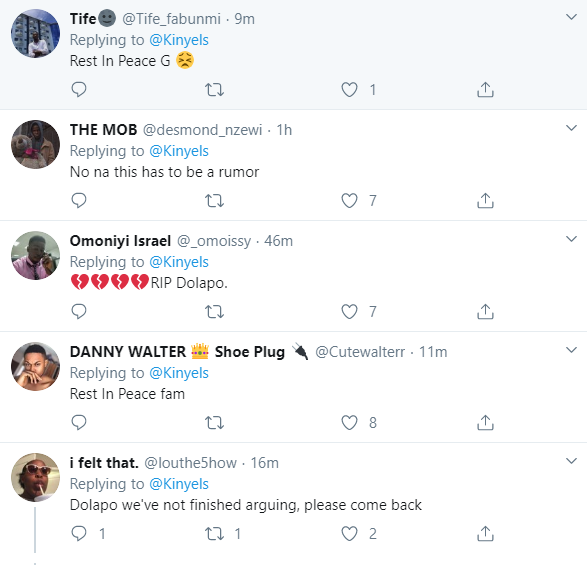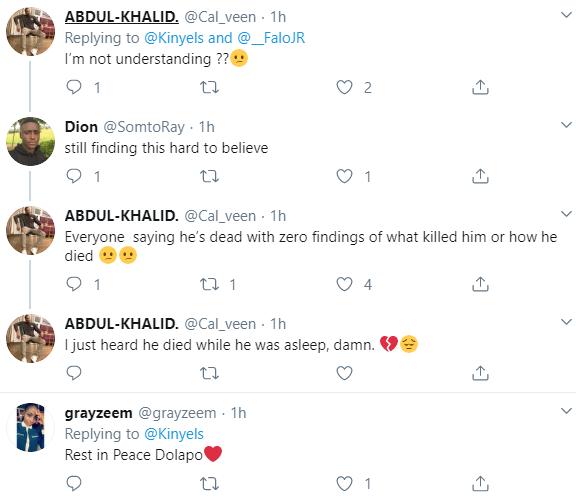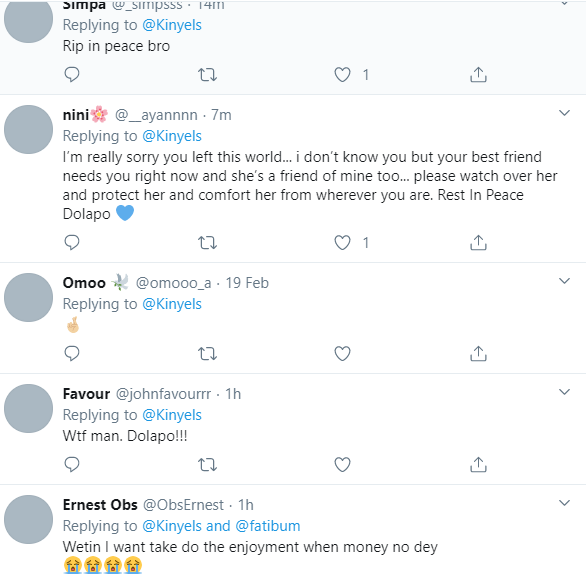 Dolapo is being mourned by his followers days after he took to the platform to advise everyone to live their best lives because they could die at any moment.