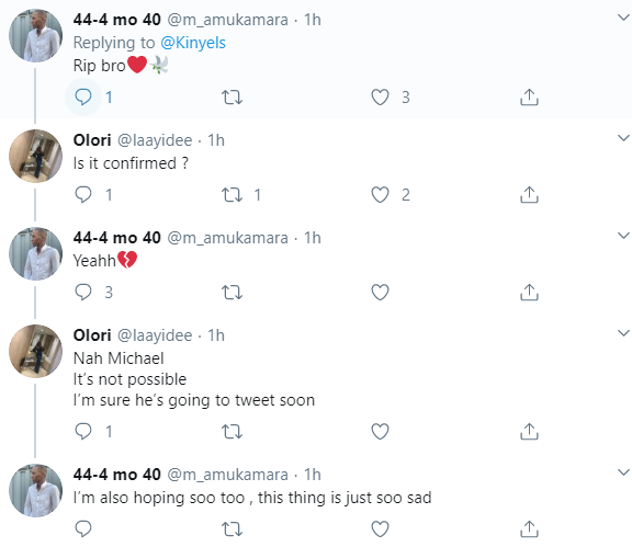 His last tweet was shared on February 22. This morning, his followers went under his tweet to reveal that he has passed on. One of them claimed that he died in his sleep.