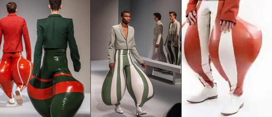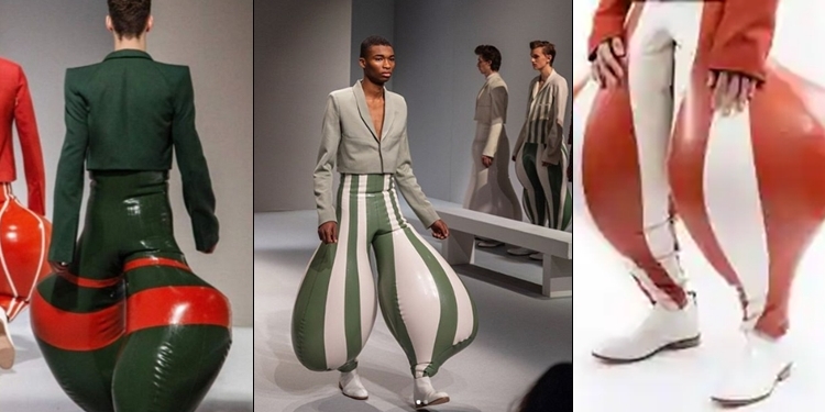 These new fashionable inflatable latex trousers for men have set the internet buzzing since they were showcased at the London College of Fashion by a young designer named Harukrushnan.