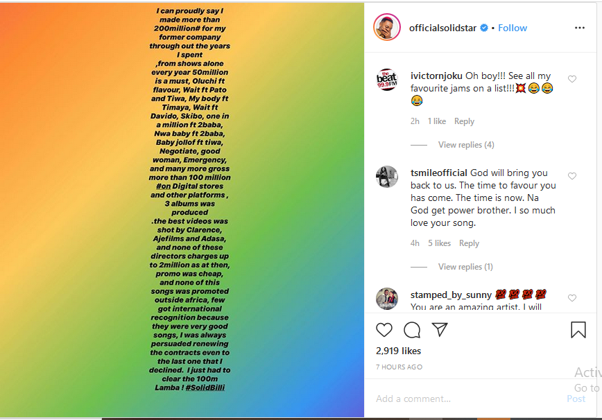 Recall Ossy Achievas had previously claimed that he invested over N100 million in Solid Star’s career in 10 years but did not make any profit from his investments.
