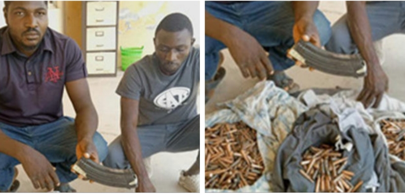 WITHIN NIGERIA learnt that the suspects identified as Dung Bulus Rwang and Dachollum Yohanna were arrested with 1,360 rounds of live ammunition of 7.6mm calibre during a motorised patrol along Bauchi-Jos Road.