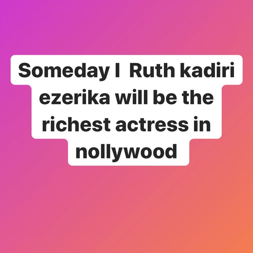 Nollywood Actress, Ruth Kadiri Ezerika has posted a bold message on her Instagram story. She declared that she hopes to become the richest actress in the Nollywood industry.