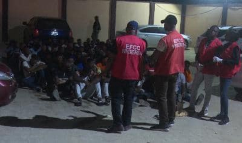 The anti-graft agency disclosed that the hotel which is allegedly a haven for internet fraudsters is being guarded by armed security men from three security agencies including the Nigerian Army, the Nigeria Police and the Nigerian Navy.