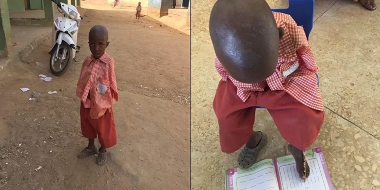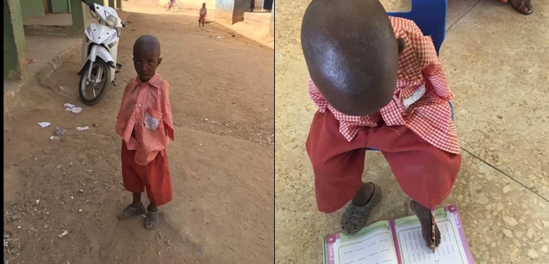 This special and talented young boy, Abdulahi Umar was born without hands. According to reports, Umar who is four year old resisted attempts by his parents to carry him in a wheel barrow to beg for alms.