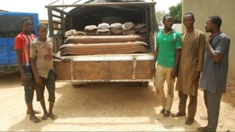 “On 27th February, 2020 at about 0400 hours, Police detectives attached to Katcha Division while on patrol along Badeggi Bida road intercepted one Toyota Canter with Reg. No. BNZ 143 XA loaded with 168 pieces of railway sleepers suspected to have been vandalized from railway track and five (5) suspects were arrested namely : 1. Babaya Mohammed aged 28 years ‘m’ of Hanchita village, Katcha LGA 2. Nasiru Mohammed aged 20 years ‘m’ of Jebba LGA Kwara State 3. Abdullahi Mohammed aged 20 years ‘m’ of kakani village, Dakingari LGA, Kebbi State 4. Zayanu Danmagaji aged 20 years ‘m’ of Zamfara State and 5. Yakubu Mohammed aged 20 years ‘m’ of Kakani Village Dakingari LGA, Kebbi State,” the statement reads.