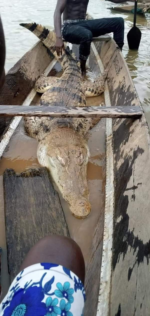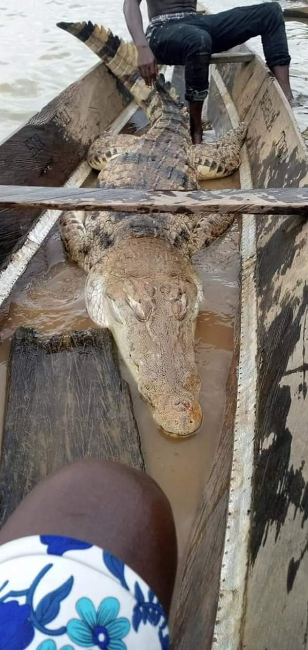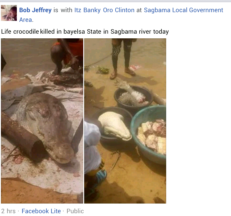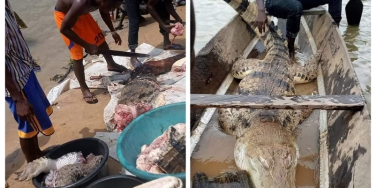 Yet-to-be identified young men have reportedly caught a crocodile in Sagbama river, Bayelsa State.