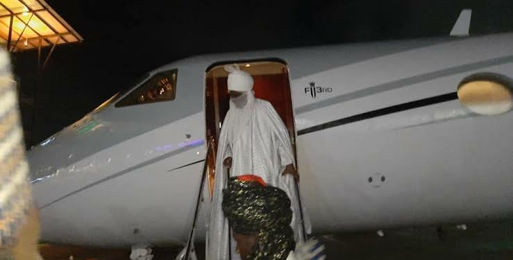 The private jet that conveyed the former Emir touched down at the Murtala Muhammed International Airport (MMIA), Lagos late Friday night. He had departed the Nnamdi Azikiwe International Airport, Abuja (NAIA) around 10:30 p.m, aboard a private jet.