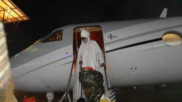 The private jet that conveyed the former Emir touched down at the Murtala Muhammed International Airport (MMIA), Lagos late Friday night. He had departed the Nnamdi Azikiwe International Airport, Abuja (NAIA) around 10:30 p.m, aboard a private jet.