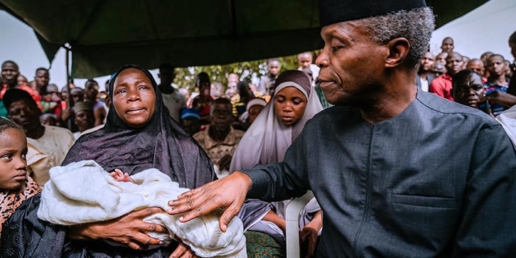 Prof. Osinbajo arrived the community at about 3.45 pm accompanied by aides and was received by the Chief of the village, Alhaji Alhassan Yussuf and other leaders of the community.
