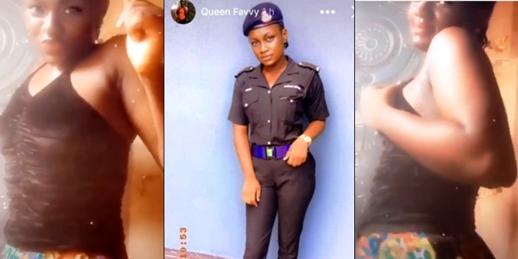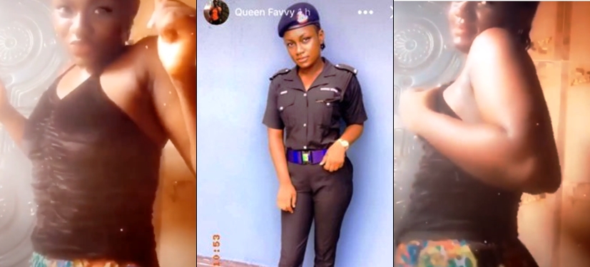 A stunning Nigerian policewoman, identified simply as Queen Favvy has taken to Facebook to share a video of her twerking to Fireboy’s ‘Gbas Gbos’ song playing in the background.