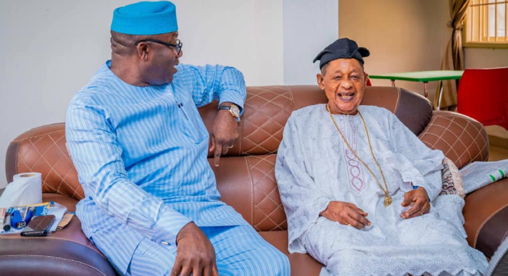 The Governor of Ekiti State, Dr. Kayode Fayemi has visited the Oyo Paramount Ruler, Alaafin of Oyo, Oba Lamidi Olayiwola Adeyemi III on Sunday in his palace.