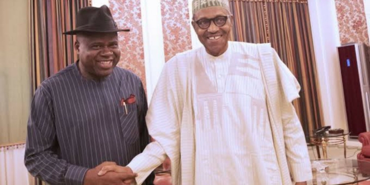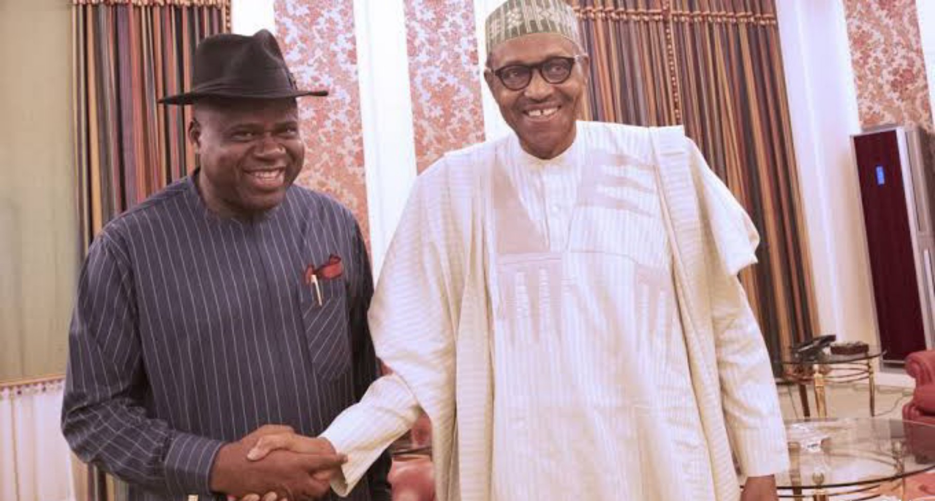 President Muhammadu Buhari has met with the new governor of Bayelsa state, Senator Duoye Diri, at the presidential villa, Abuja.