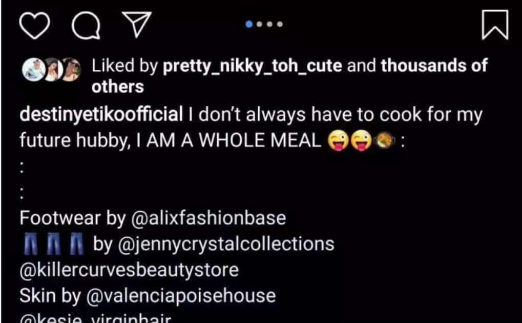 Nollywood actress, Destiny Etiko has taken to her Instagram page to share how she intends to run her home when she gets married.