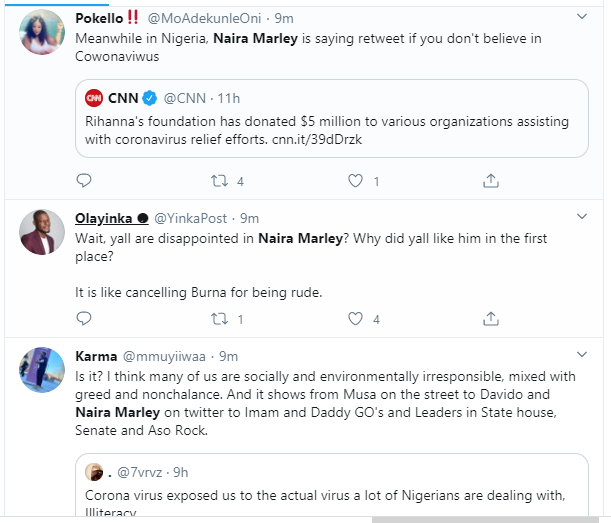 Naira Marley however got tackled by some social media users who accused him of using his platform to disseminate “wrong information” which is not wanted at this time.