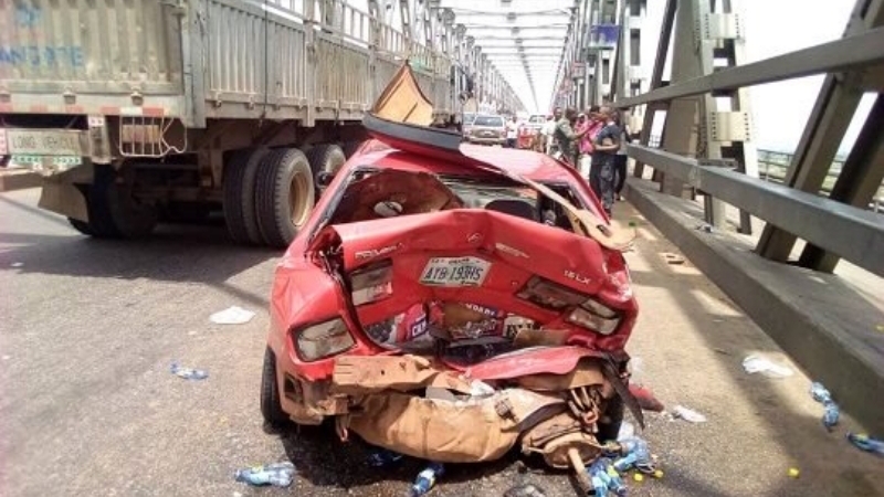 Tragedy as no fewer than five vehicles reportedly collided at the River Niger bridge in Onitsha, Anambra State.