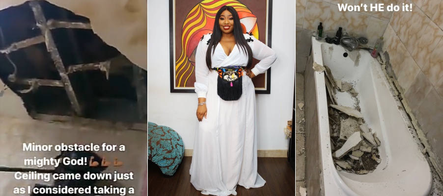 Taking to her social media page, the media personality thanked God for saving her life as she might have been seriously harmed if the ceiling had fallen when she was already taking a shower.