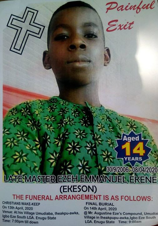 The remains of deceased which has been deposited at the general hospital’s morgue, would be conveyed to Igboeze Local Government Area of Enugu State for burial on Tuesday, April 14.