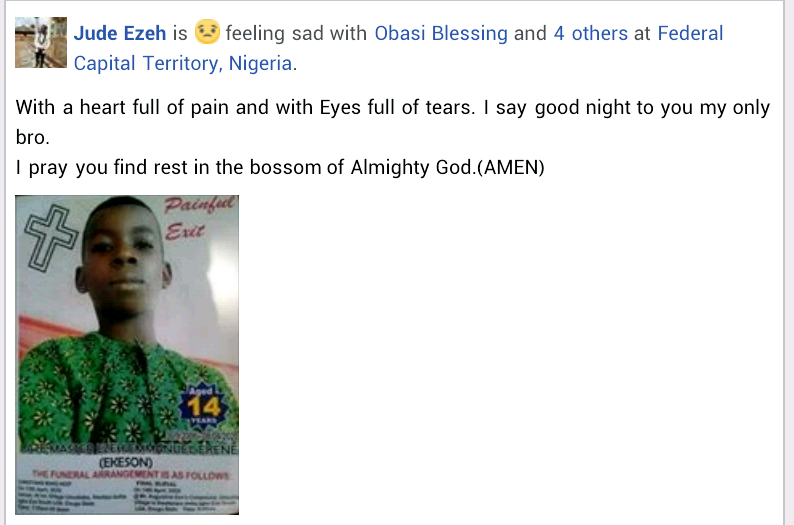 The elder brother of the deceased, Jude Ezeh, has since taken to Facebook to mourn Ekene’s death.