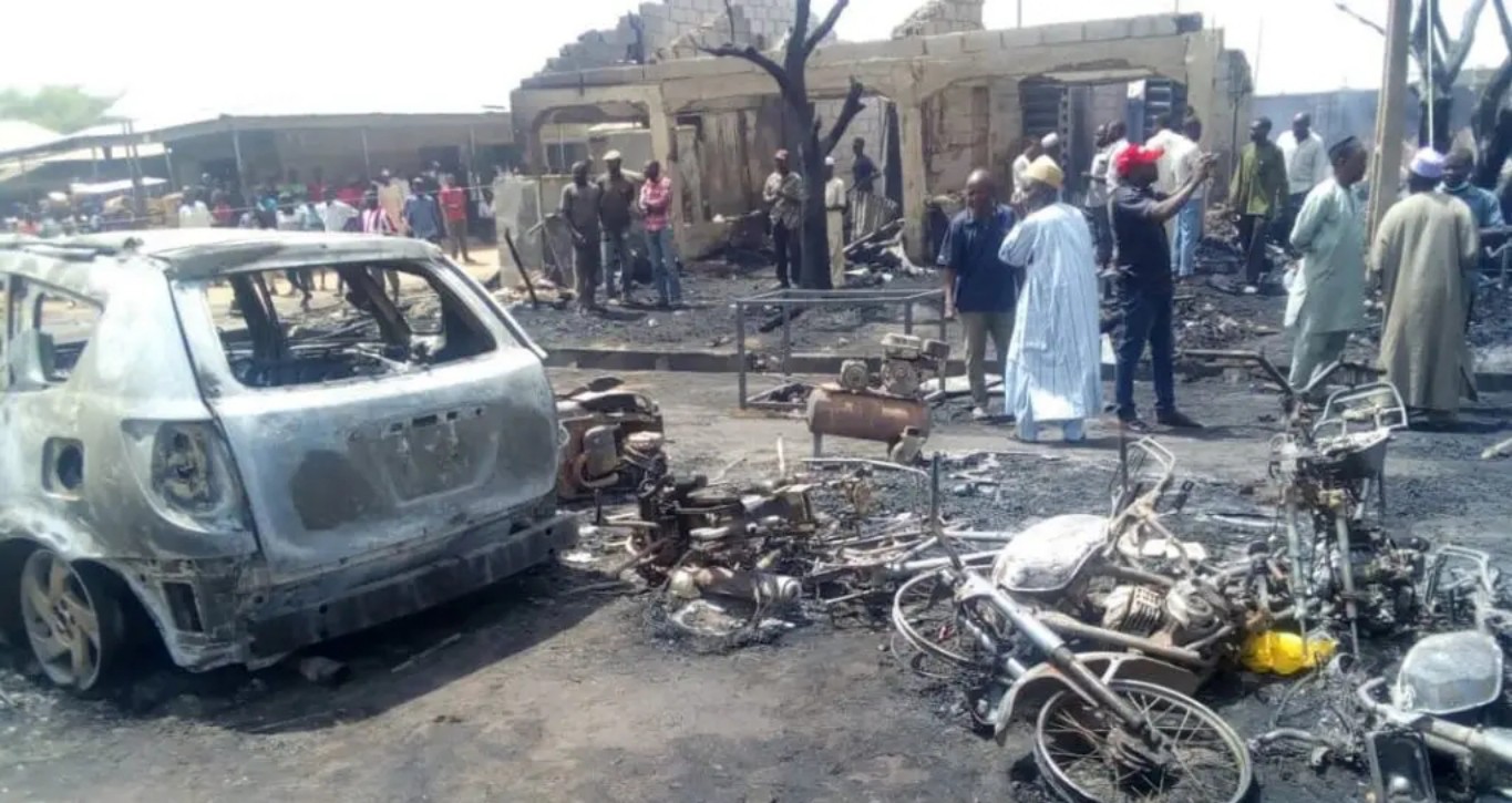 so far, 17 shops, 8 cars, 11 motorcycles and 1 Keke Napep were burnt in the inferno.”