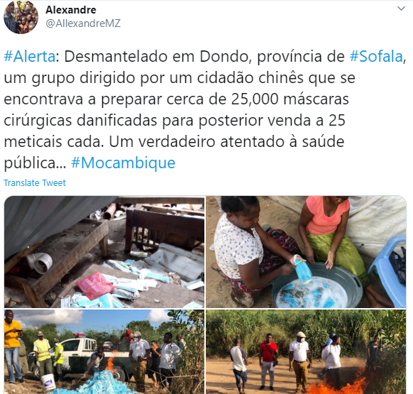The incident took place in Mozambique, and according to reports, they intend to resell the face masks to residents of Sofala province in the country.