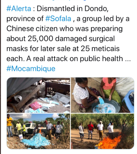 In the midst of a raging global pandemic, that is very easily contracted, two Mozambican women said to have been employed by a Chinese national, were nabbed washing used facemasks which they intended to resell.