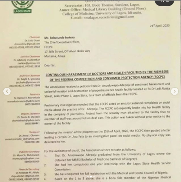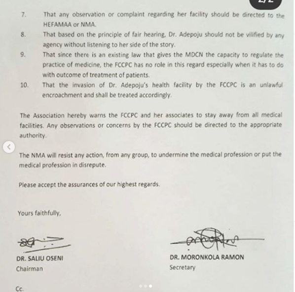 The Instagram user who slammed the Nigeran Medical Association (NMA) over its notice in which it reportedly warned FCCPC officials against invading Dr Anu’s property, also shared a petition against Dr Anu’s botched surgeries which was described as “unethical”.