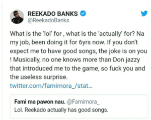 Reekado’s response clearly showed that he was not in the mood for any sort of disrespect for his craft and creativity.