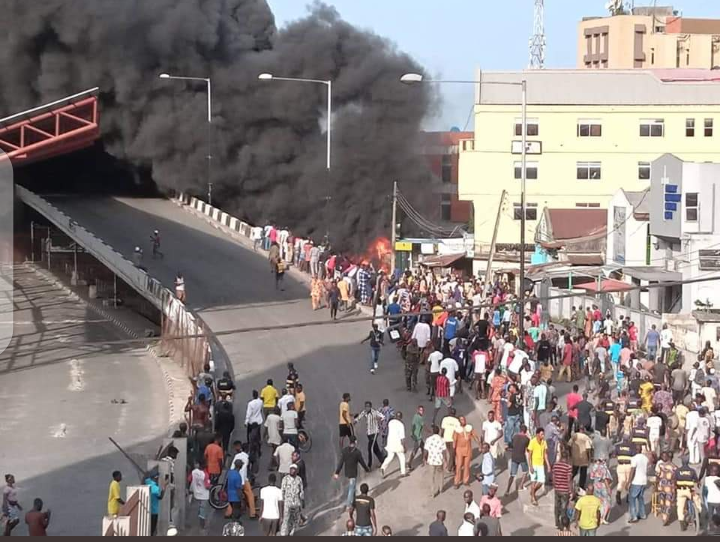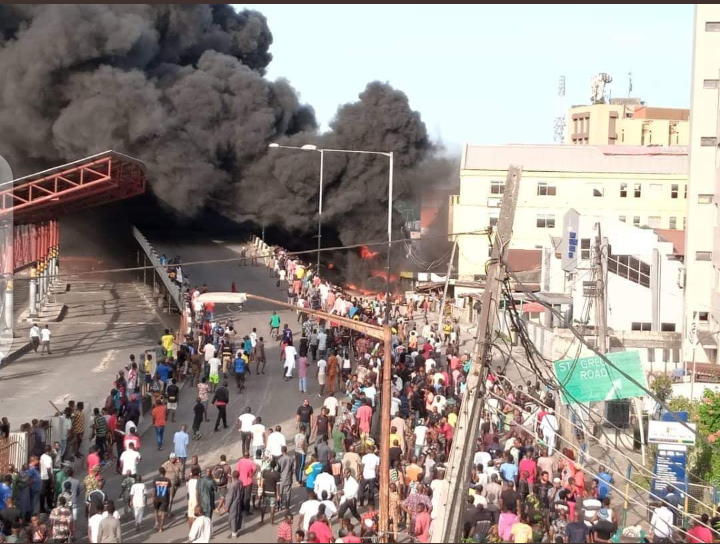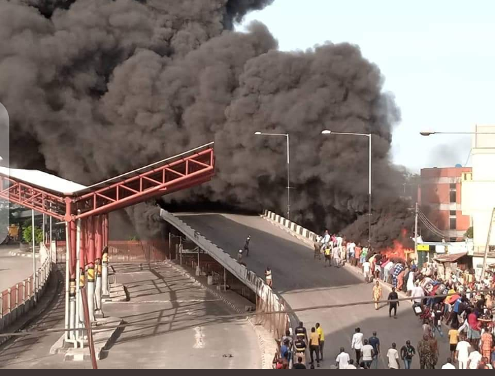 Eyewitness account disclosed that the fire is raging beneath the Obalende Bridge, Ikoyi, Lagos.