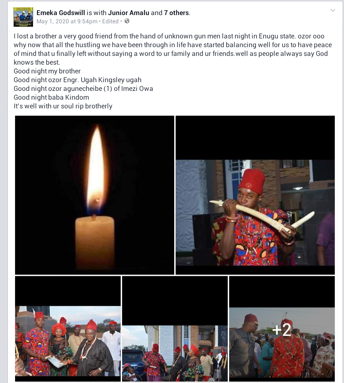 Tragedy as a civil engineer identified as Okwudili Kingsley Ugah was reportedly shot dead by suspected assassins in Enugu.