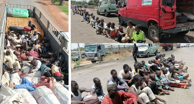 No fewer than 150 travellers including Almajiri children travelling in three vehicles along the Abuja-Kaduna road have been intercepted by security operatives on Wednesday, May 6.
