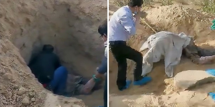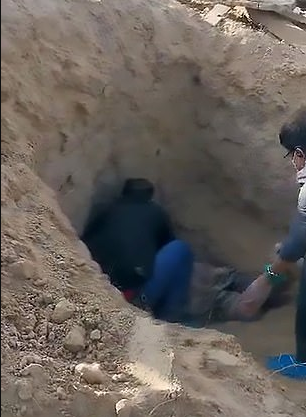 Officials soon located the burial pit and started digging the tomb after hearing someone screaming for help.