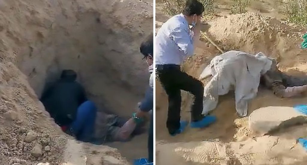 Officials soon located the burial pit and started digging the tomb after hearing someone screaming for help.